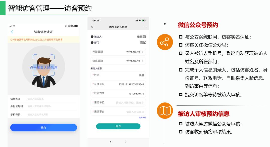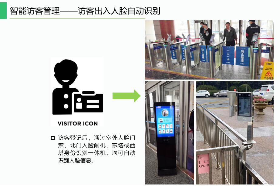 智慧訪(fǎng)客通過(guò)訪(fǎng)客登記一體機識別訪(fǎng)客二代身份證,自動(dòng)獲取預約信息,現場(chǎng)抓拍訪(fǎng)客照片,與預約信息進(jìn)行人像比對,實(shí)現訪(fǎng)客人臉信息與人行閘機聯(lián)動(dòng),自動(dòng)識別訪(fǎng)客身份,具備黑名單過(guò)濾功能,自動(dòng)判斷訪(fǎng)客是否為黑名單人員。訪(fǎng)客系統可實(shí)現與公安特殊人員庫對接,通過(guò)讀取二代身份證,確認訪(fǎng)客身份信息安全性。